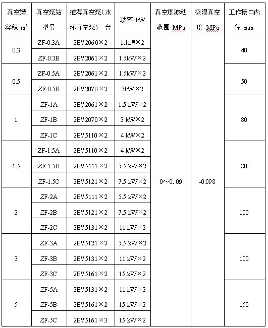 ZF系列真空泵站(又名真空發(fā)生裝置、真空負壓站等)是以一臺或二臺水環(huán)真空泵作為真空獲得設備,以真空罐作為真空存儲設備的成套系統(tǒng)。對于頻繁使用真空源而所需抽氣量不太大的場合下,該系統(tǒng)比直接使用真空泵大大節(jié)約了能源,并有效提高了真空泵的使用壽命。